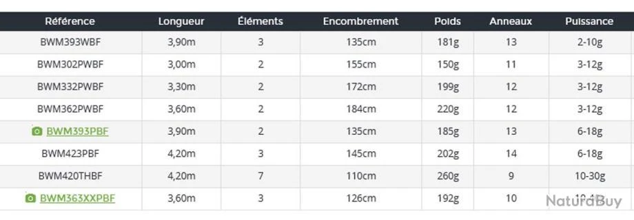 Canne puissance max : 31 – 40 g