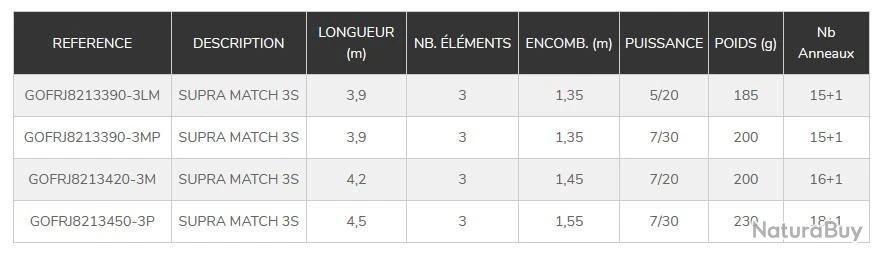 Caractéristiques de la canne Feeder Garbolino Supra Match 3S 4.20 M 7-20 G Medium